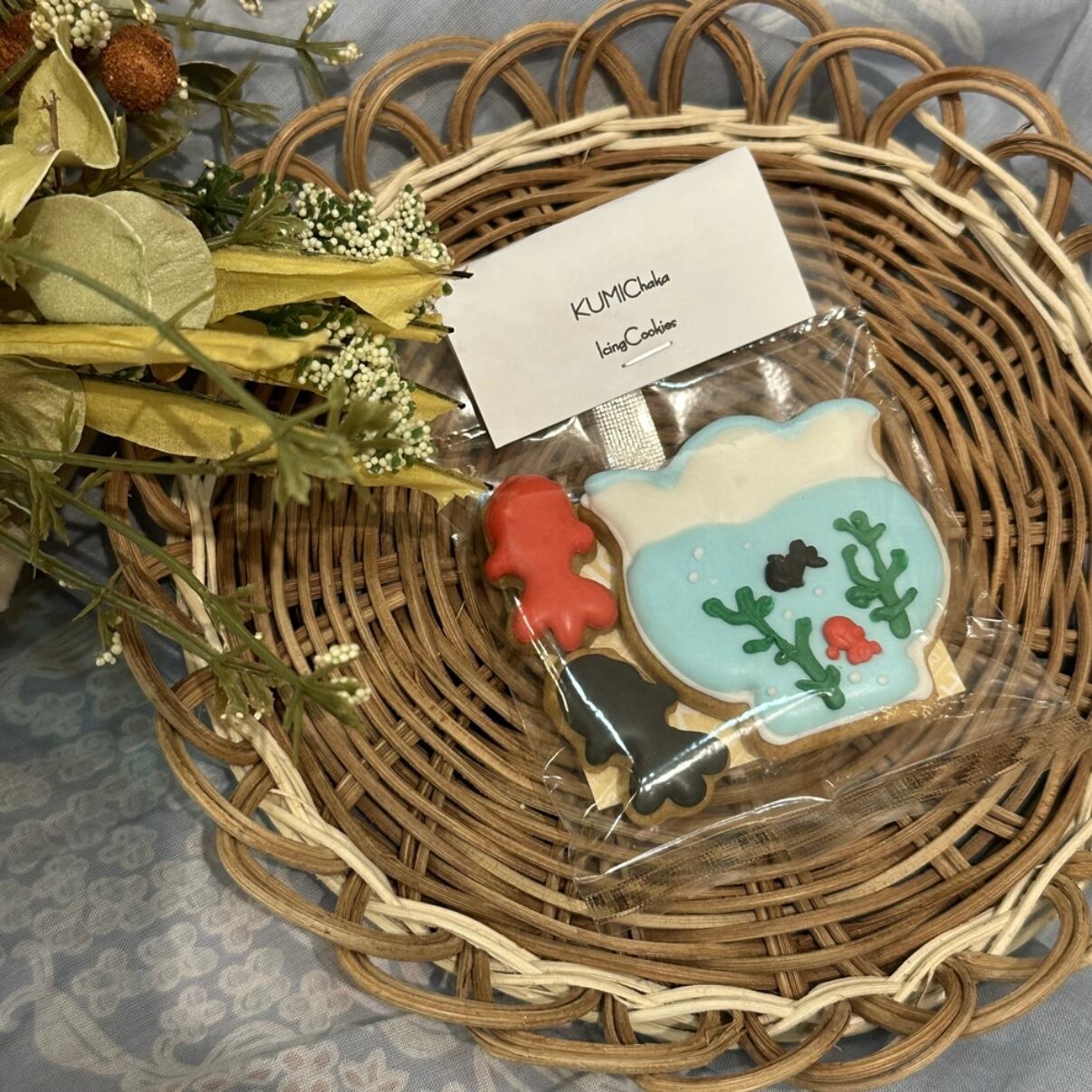きんぎょと金魚鉢のアイシングクッキー3枚入りです。
